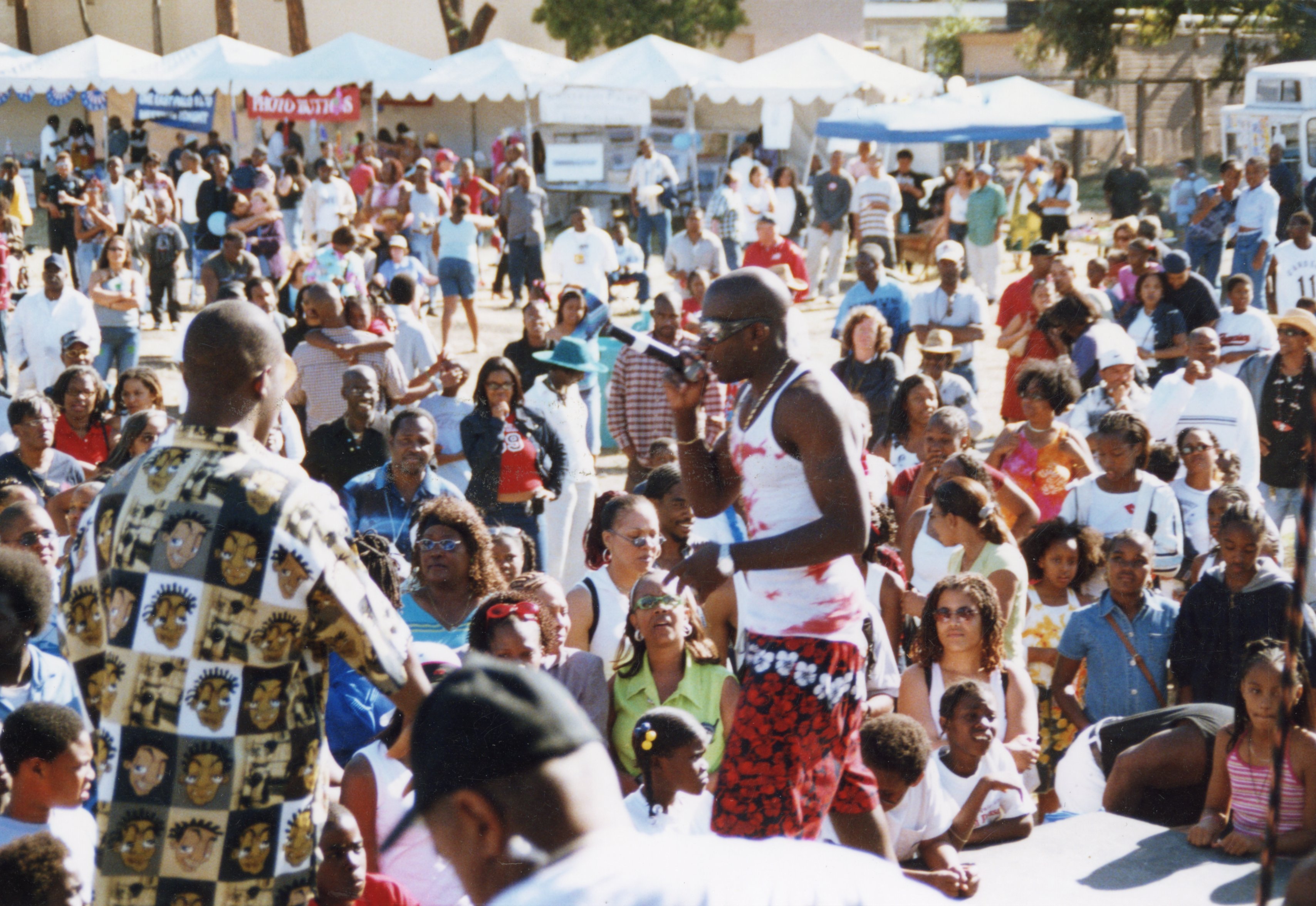 Photographs of Markus McKinley AKA Prozak performing during the 2002 Juneteenth Festival at Bell Street Park in EPA.