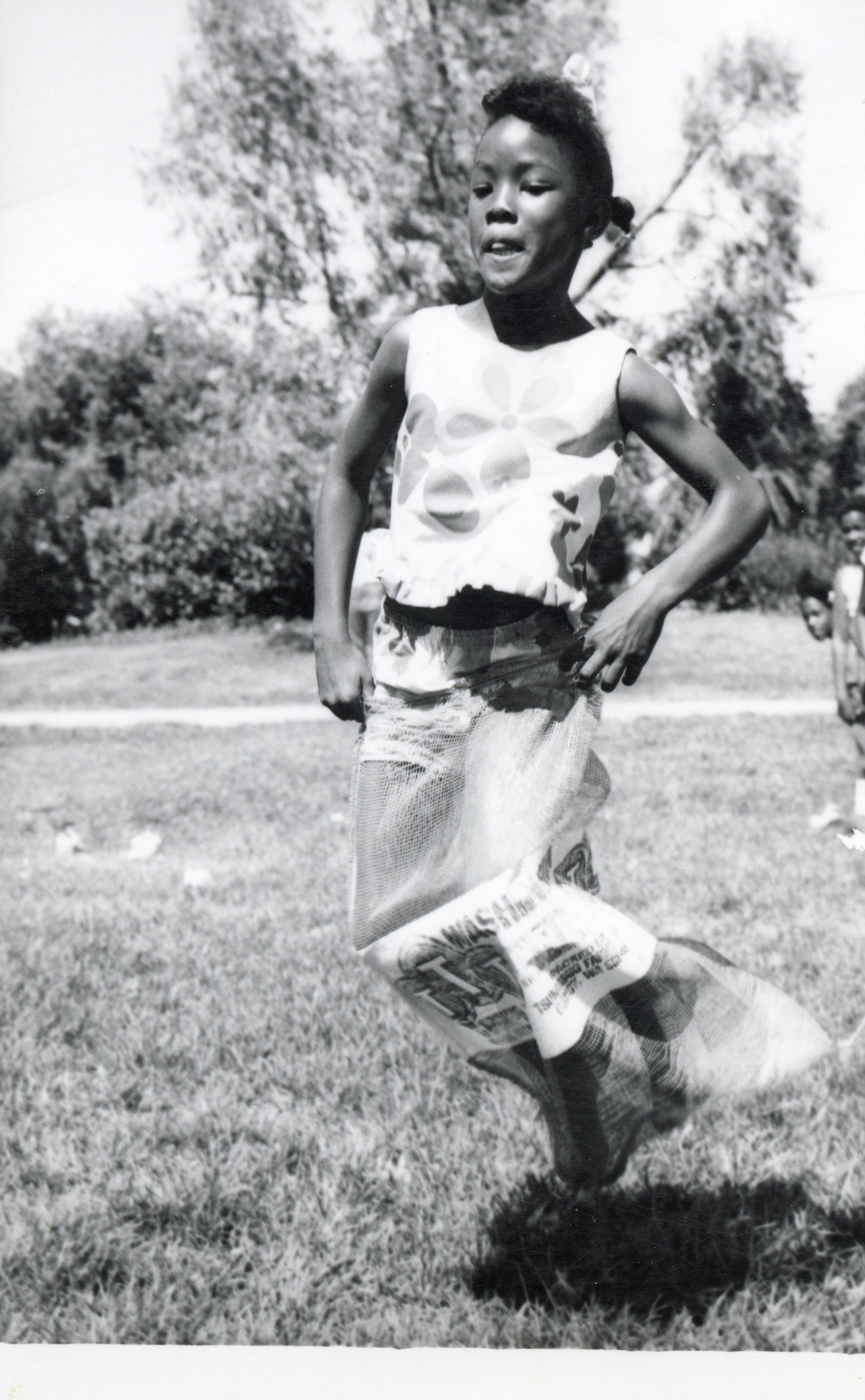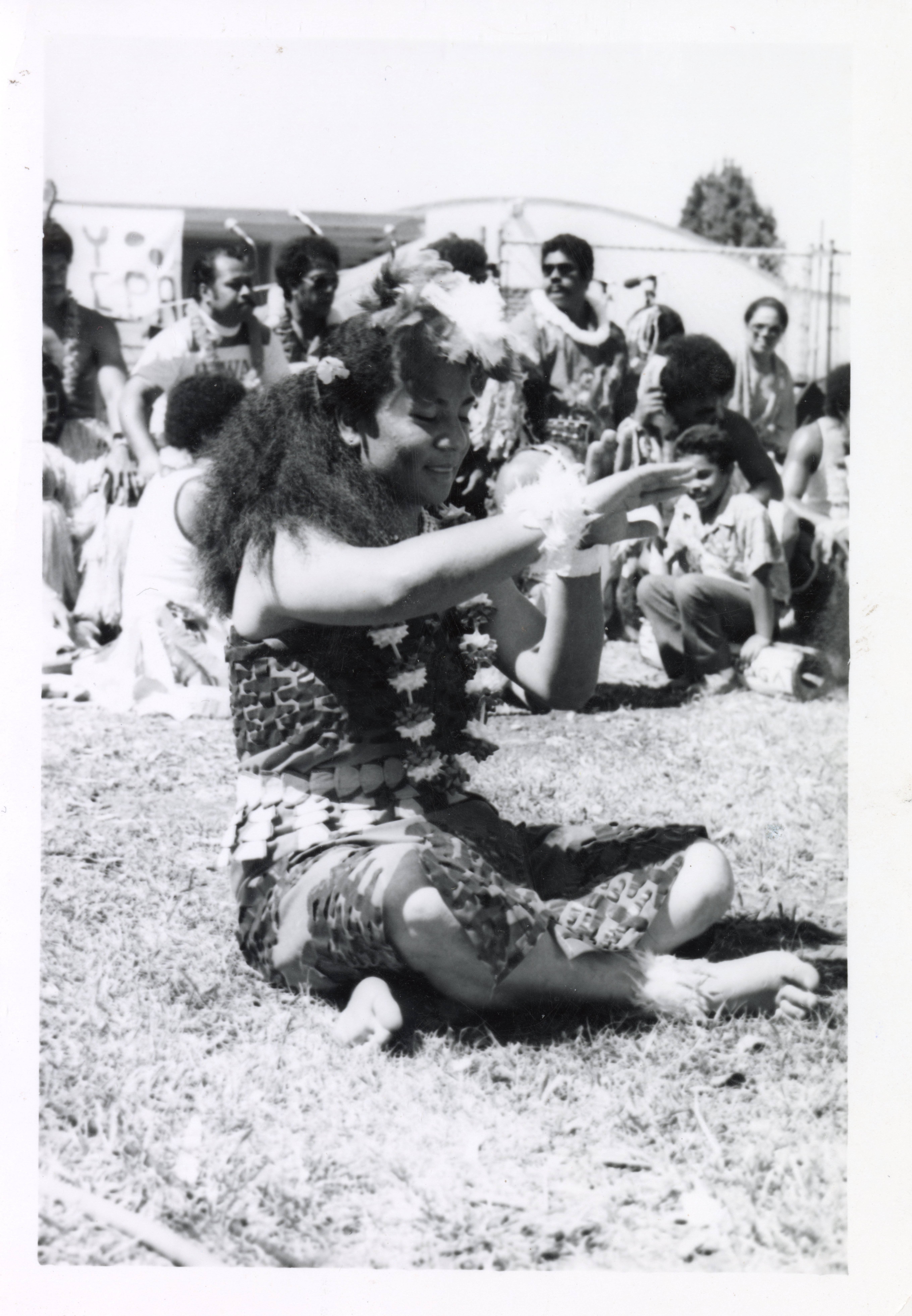 Photographs from EPA's first city birthday at Bell Street Park in 1984. Includes photographs of children participating in sack races, pacific islander dancer performances, and various speakers.