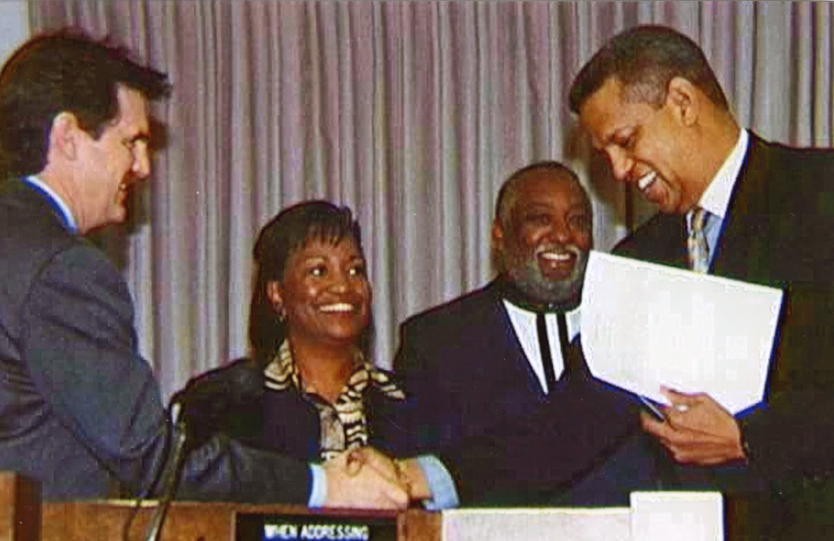 Duane Bay, Rose Jacobs Gibson, RB Jones, and City Manager Jerry Groomes at the EPA City Council swearing in ceremony in December 1996.