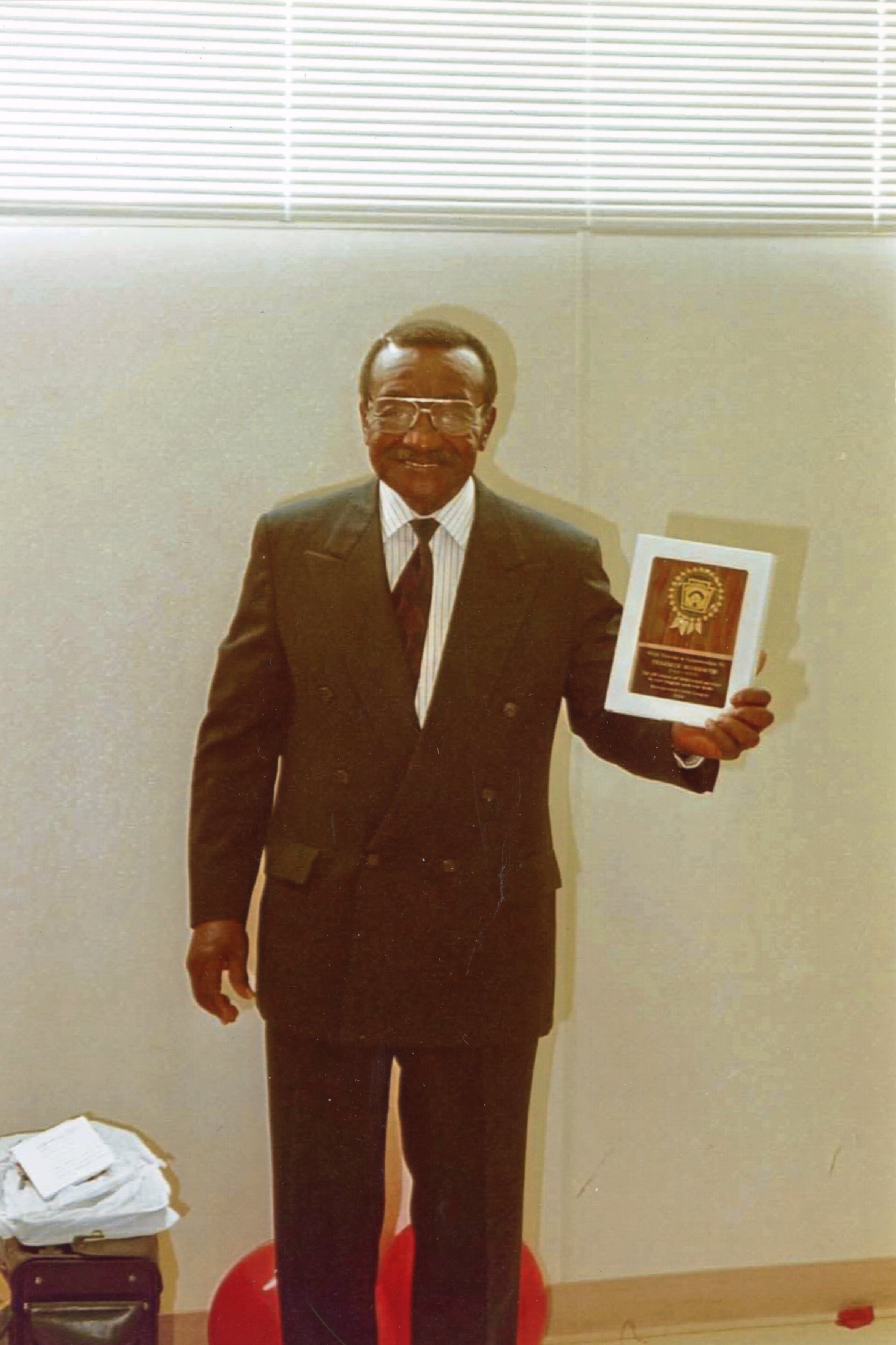 Photographs of Tommie Roberts retiring from Ravenswood Little League. Include a photo fo Mr. Roberts with his wife, Mamie Roberts.