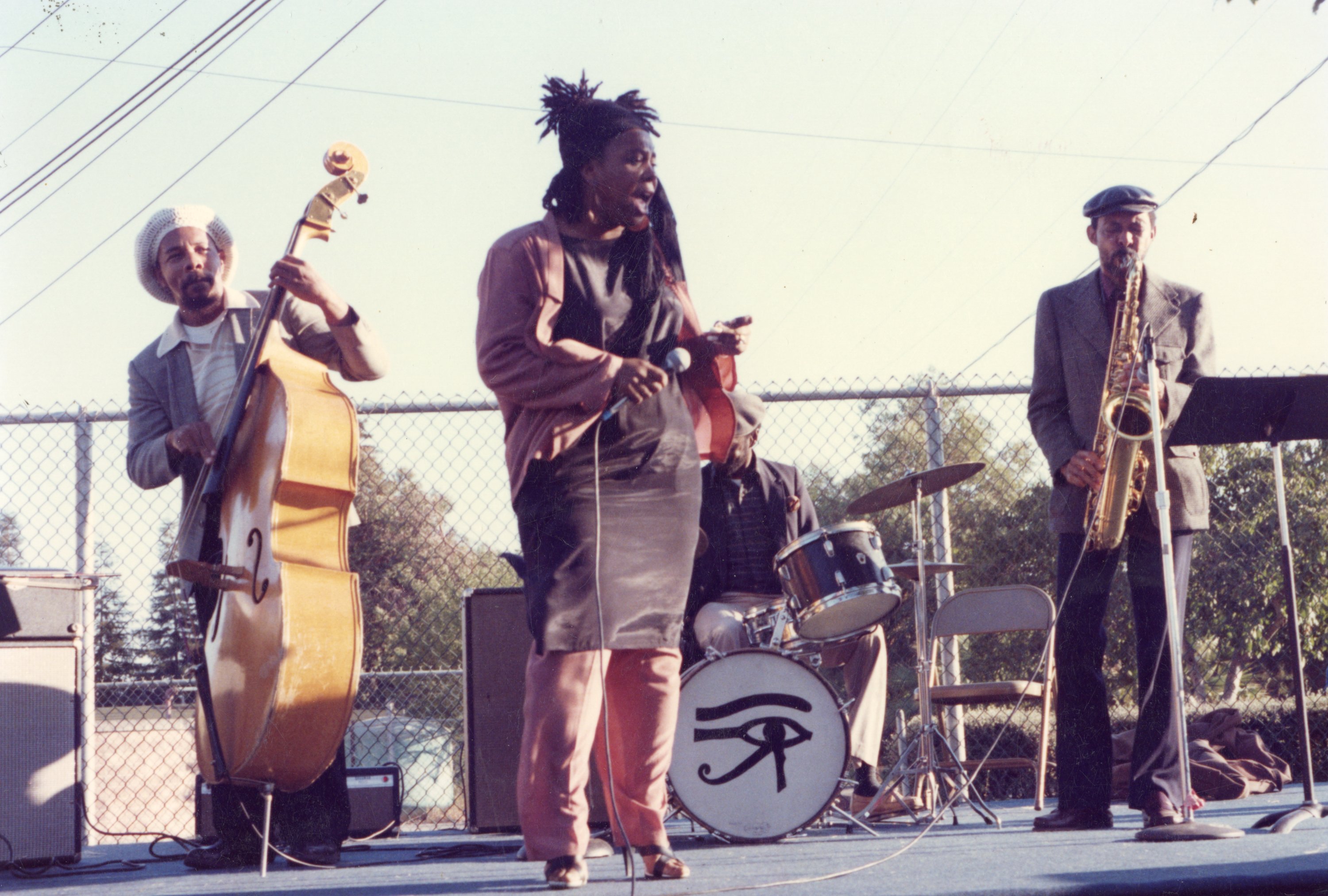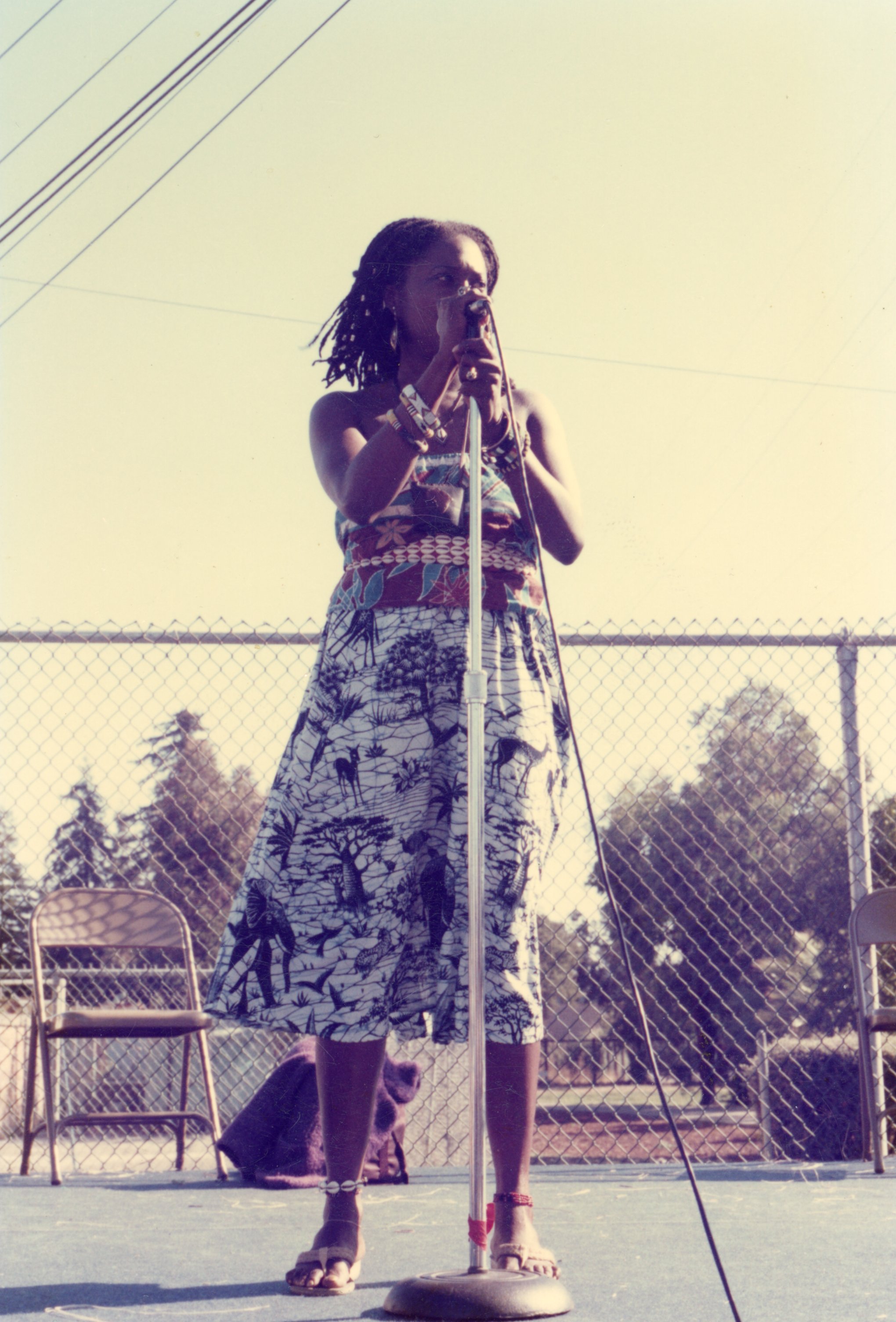Photographs from the first anti-drug art & street fair at Bell Street Park in East Palo Alto. Photographs feature performers and attendees, including Phavia Kujichagulia, Shadidi Harding, Henrietta Reynolds, Carmaleit Oakes, Mrs. L. Johnson, and Bob Hoover.