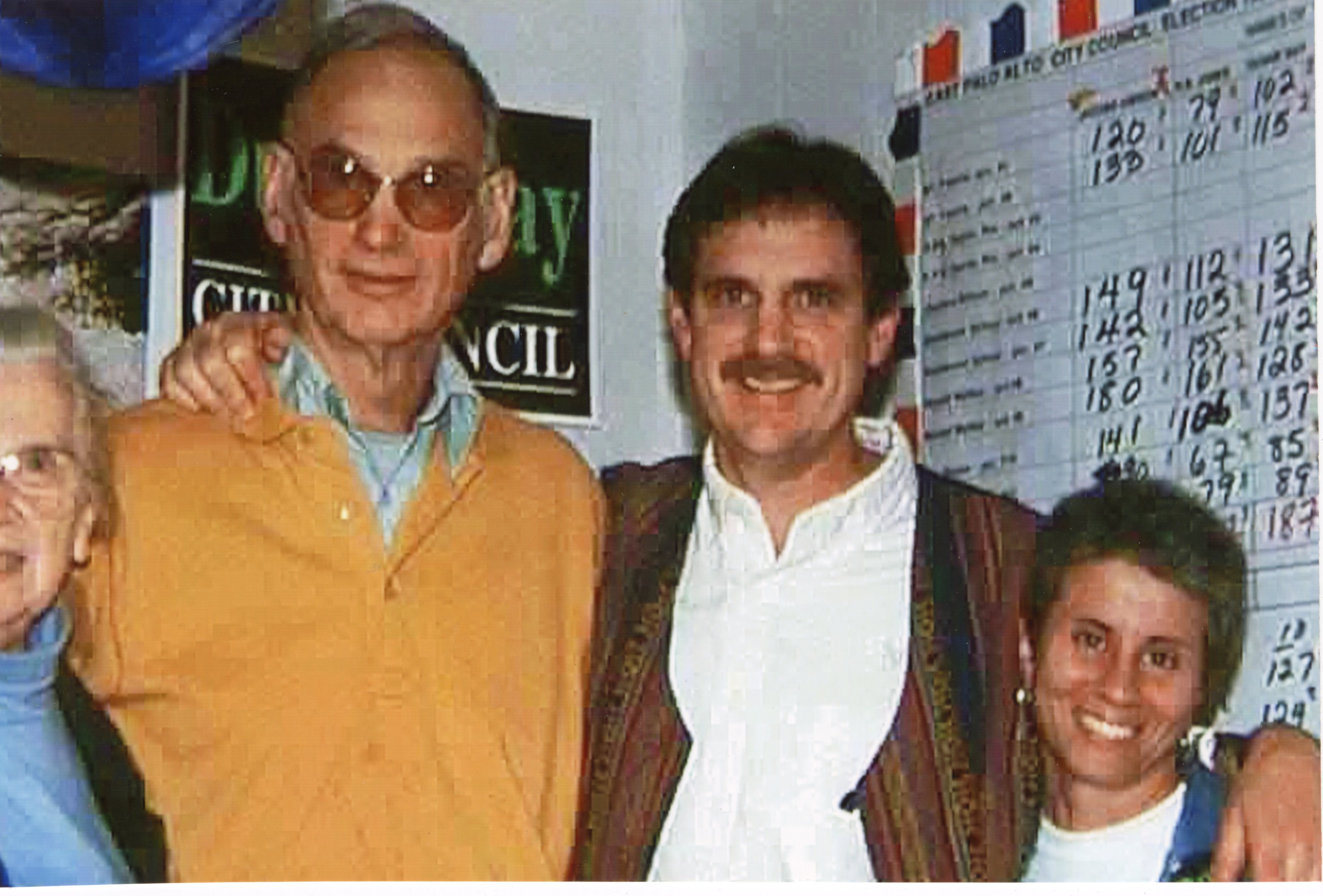 Photographs from election night 1996 featuring Mary Bay, Duane L. Bay, Duane G. Bay, Barbara Noparstak, Michael Haas, William Webster, and Dee Uhila.