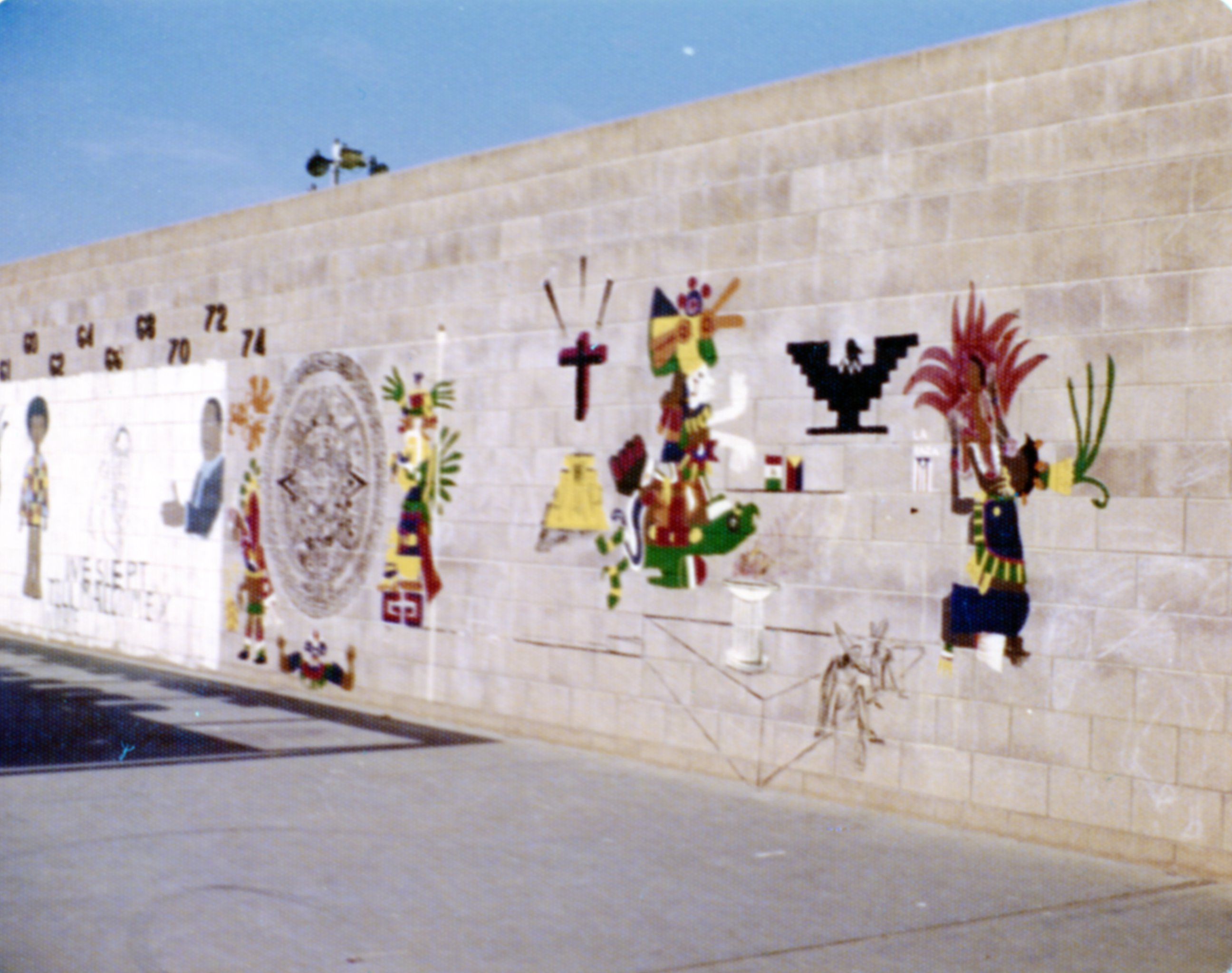 Photograph of murals painted at Ravenswood High School by Francisco Espinosa and other Ravenswood High School students.