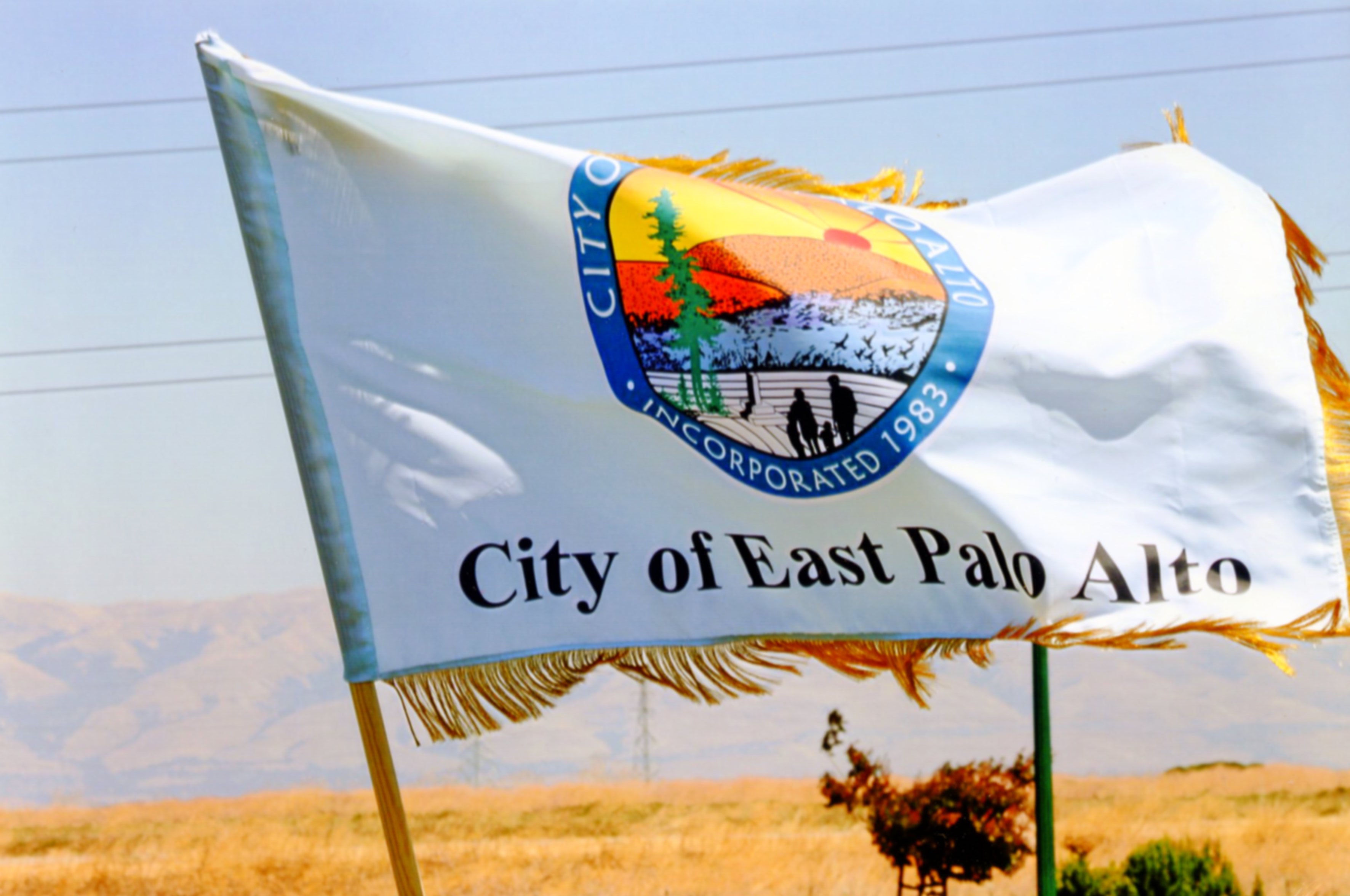 Photograph of the First Flying of the East Palo Alto Flag during the City's 26th anniversary.