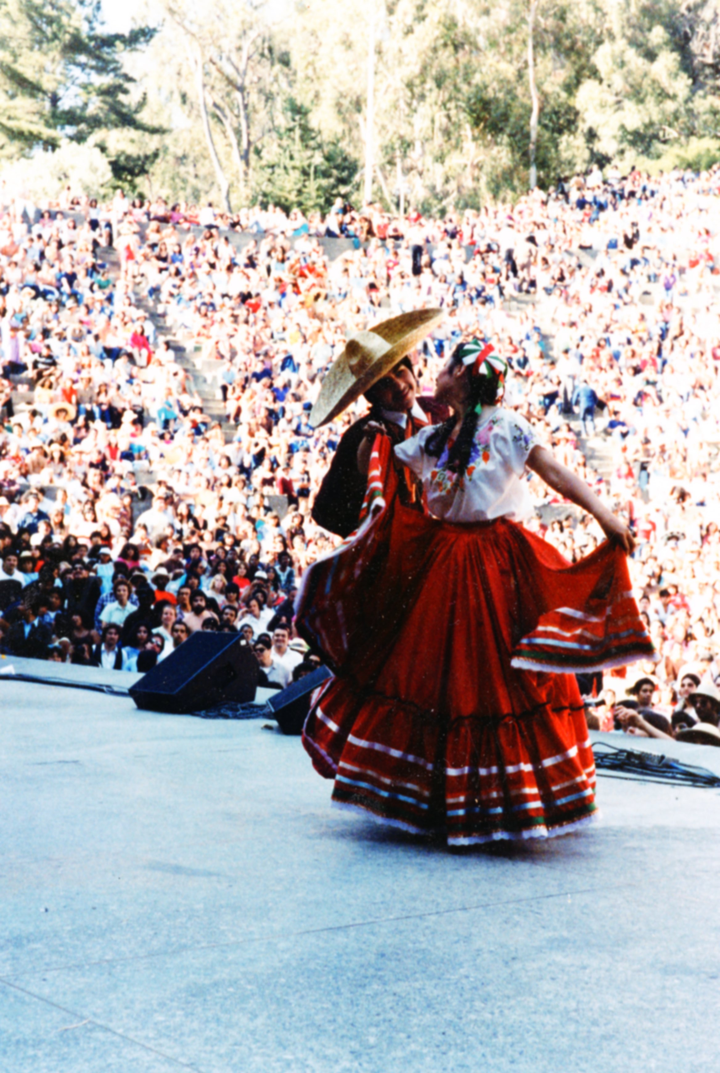 Photograph of Raices de Mexico dancers performing at the Greek Theater in Berkeley, CA.