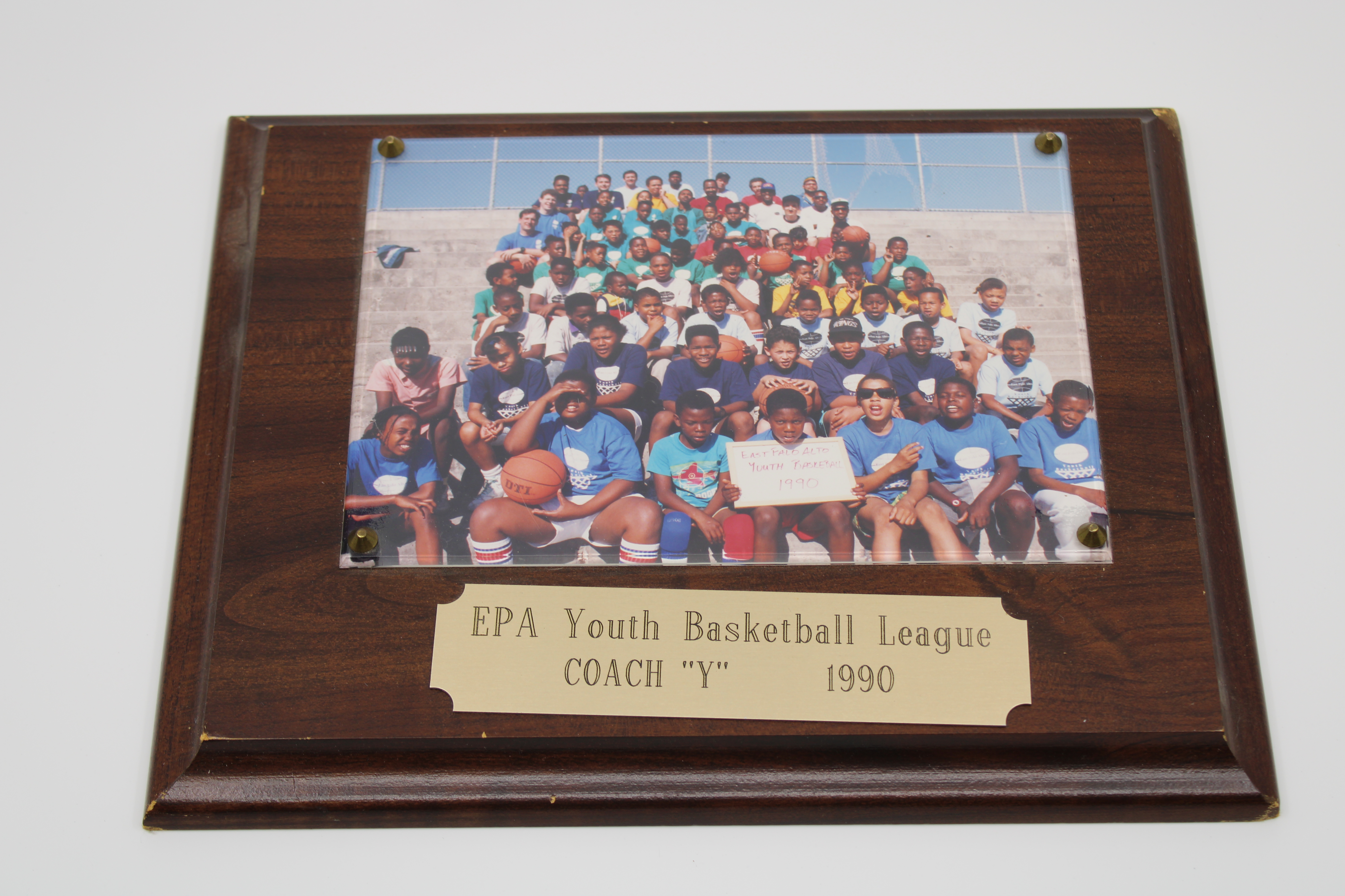 1990 EPA Youth Basketball League photo plaque for Coach "Y."