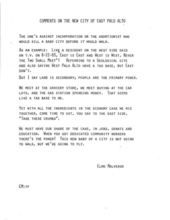 Incorporation Requires Work, Experts Advise E. Palo Alto - Unknown publication